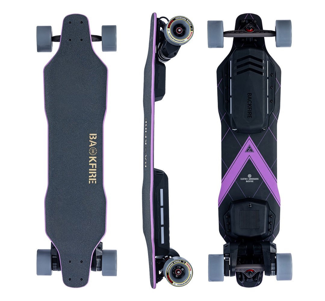 Backfire Zealot is our newly released belt driven electric skateboard with super flexible bamboo and glass fiber deck, 311wh super large battery, the 12s high voltage high efficiency electronic system, and 750w x2 ultra-high power ultra-high torque belt drive motors.
